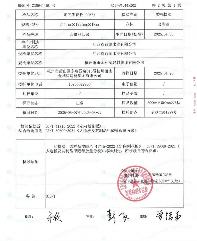 金利源F - OSB 无醛添加儿童级健康安芯板,不仅以五层定向铺装工艺大幅提升板材的强度与防潮性能,更采用行业公认的迪芬巴赫高端专业设备搭建国际前沿生产线。产品生产以后,板材需经过严苛检测,包括外观、尺寸、厚度及各项物理性能,严把产品品质。