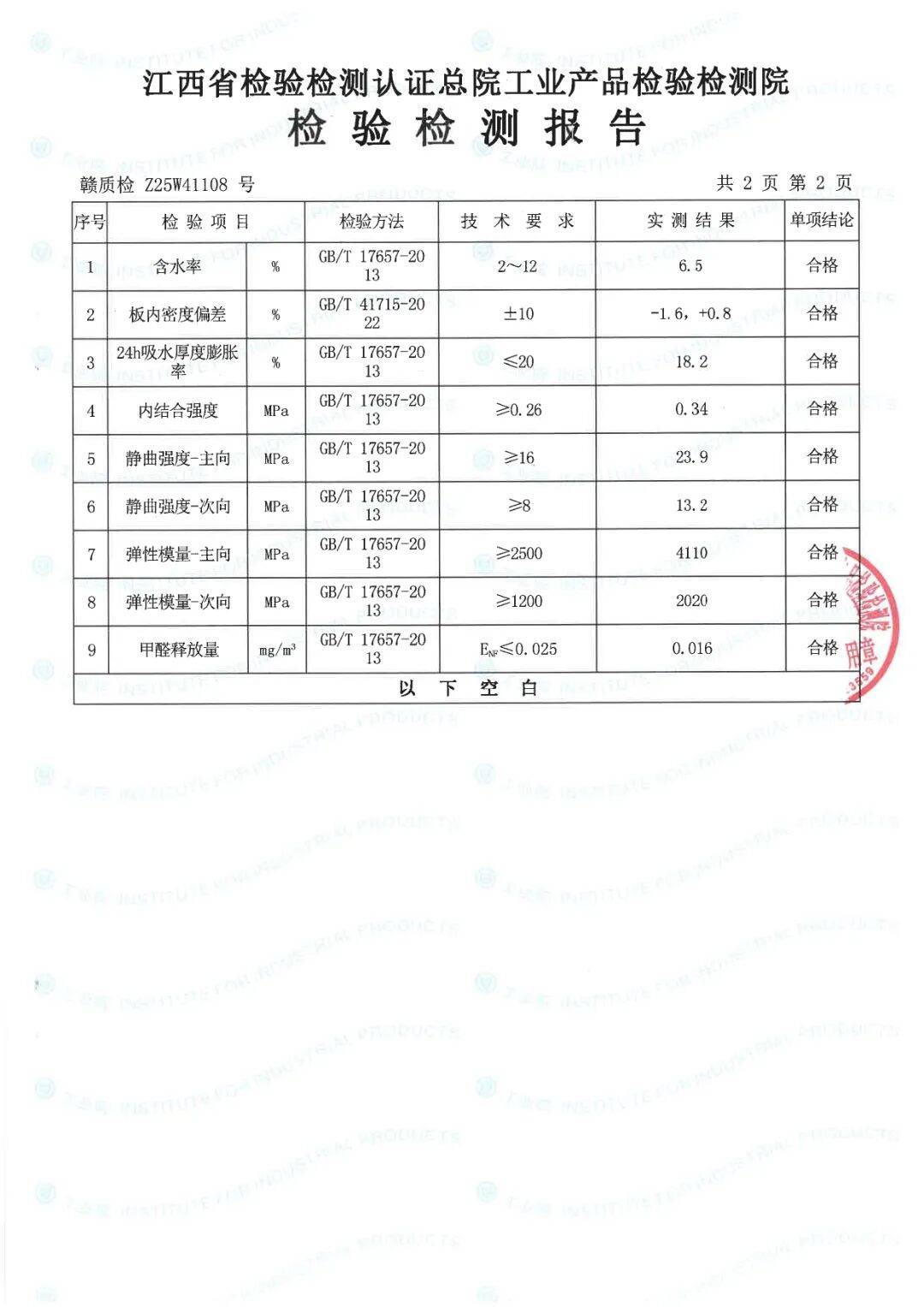 这份纯粹不仅带来清新淡雅的自然气息,更赋予板材卓越的力学性能——内结合强度达到0.34MPa,静曲强度23.9MPa、弹性模量4110MPa,全都大幅优于国标标准,让板材具备出色的承重能力与抗冲击性。同时具有承重吸音、耐老化、防潮防腐等诸多特点。