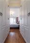 业主目前单身,需要一个主卧、一个备用房间,还想要一个敞开式的书房。该户型本身是一个标准的两房,但有两个阳台,把次卧室的阳