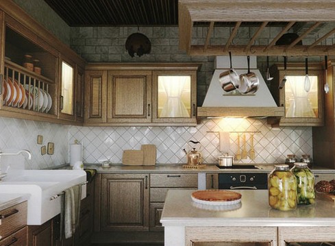 没有太多的设计元素,只是将传统厨房符号随意的渲染出来,吊顶上不经意的挂着锅盆用具,还有一串串大蒜头,是否让想起农家的屋檐呢?