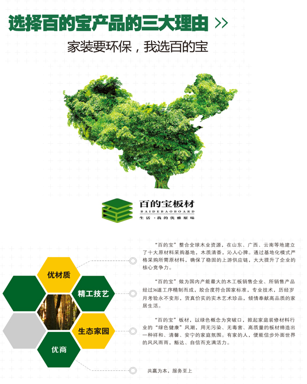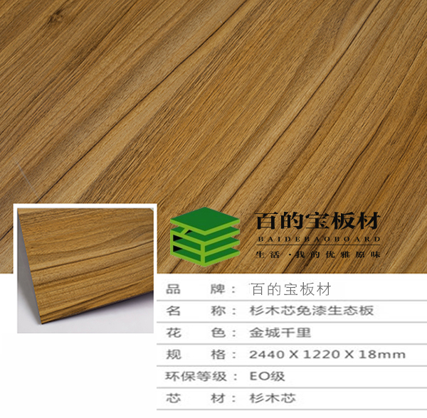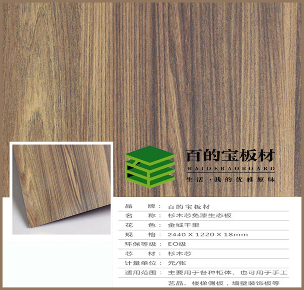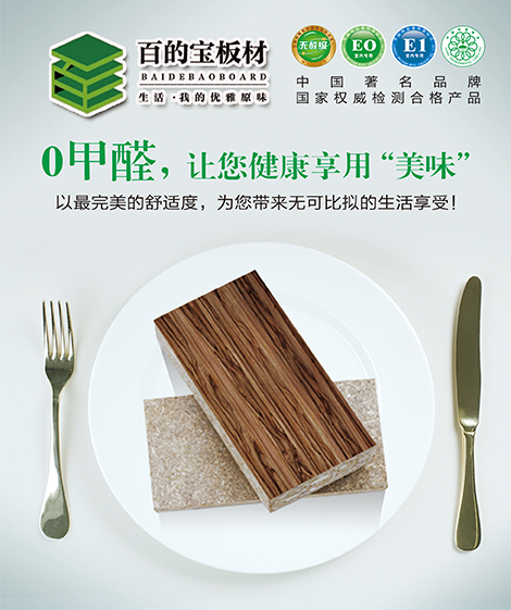 百的宝健康板材:木质密度均匀、平整度好、纹理自然清晰, 集众多优势于一身:拒绝甲醛、完美抵抗岁月的侵蚀。 百的宝健康板材品