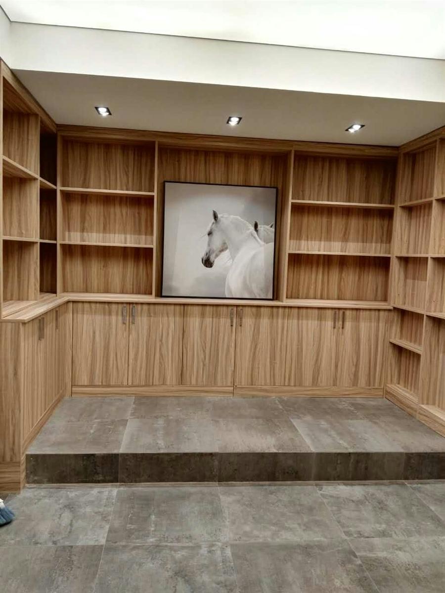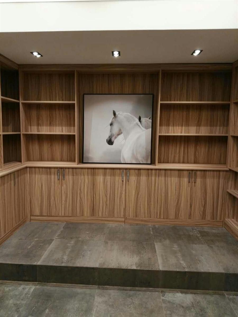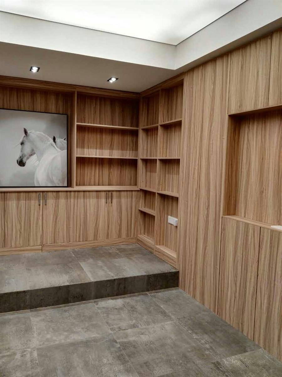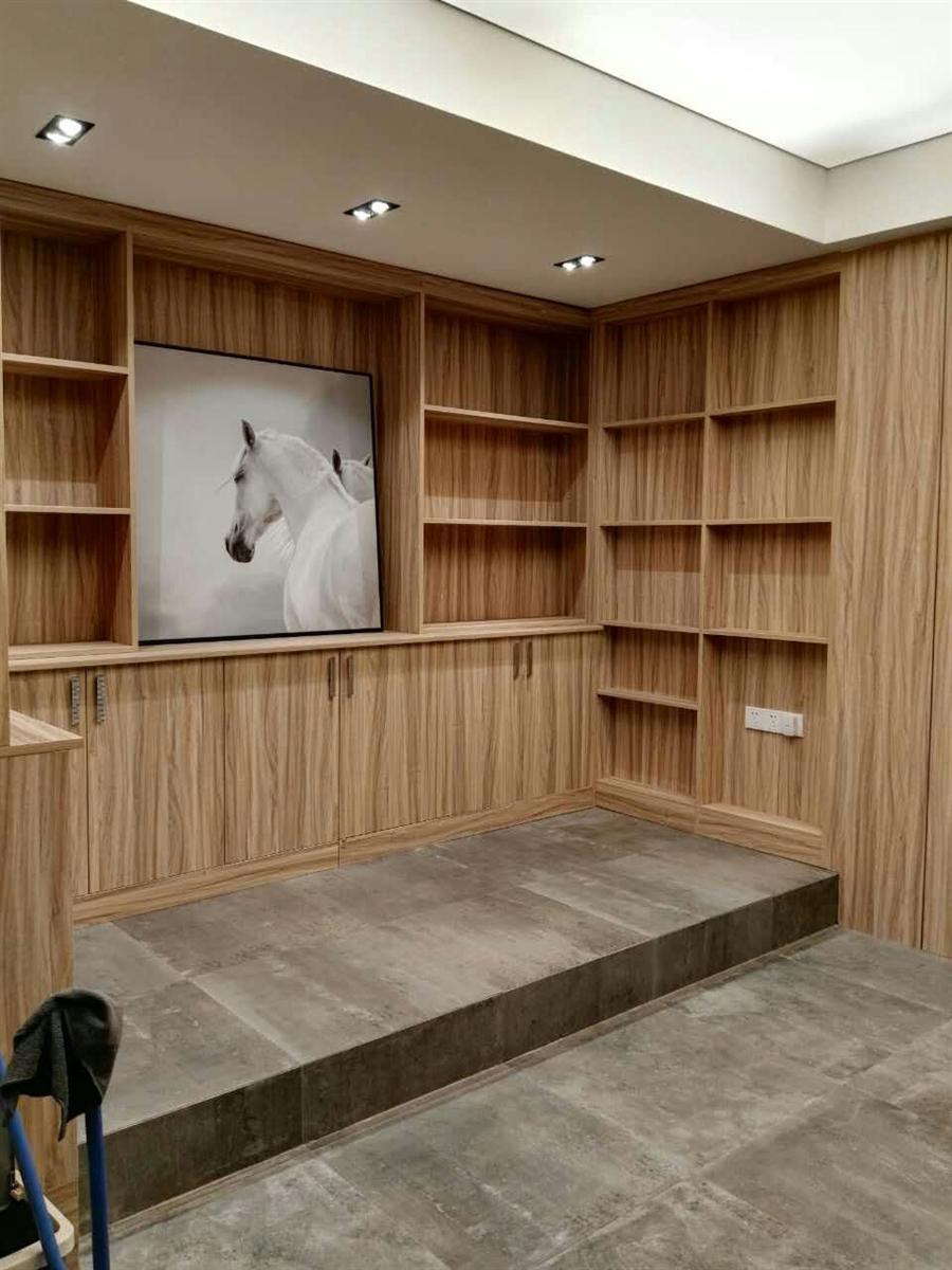分享一组安装师傅发回来的哑光UV木纹装饰柜及护墙板现场实拍图佛山吉盛唐朝木业UV装饰板材LCD5010 粘胶剂:改性三聚氰胺胶 尺寸: