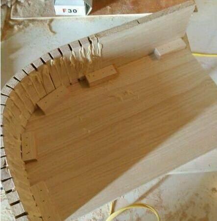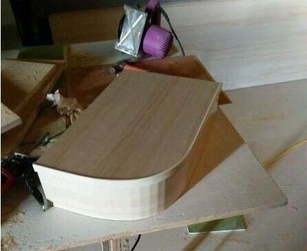 很多人不知道木匠是如何做圆的东西,带你看看圆形的细节图到底是如何做出来的,小圆角用生态板锯多条缝但是不能锯断,做圆角最好
