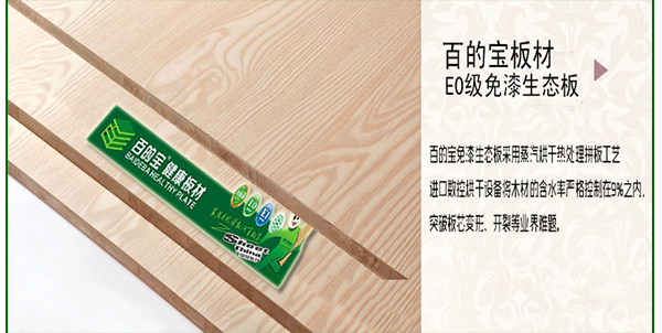 生态板是现代家装时大多数消费者的选择,生态板衣柜、生态板书柜、生态板橱柜等等。能够得到消费者的认可生态板自有它的优势,今天百的宝板材要讲的就是——百的宝E0免漆生态板。