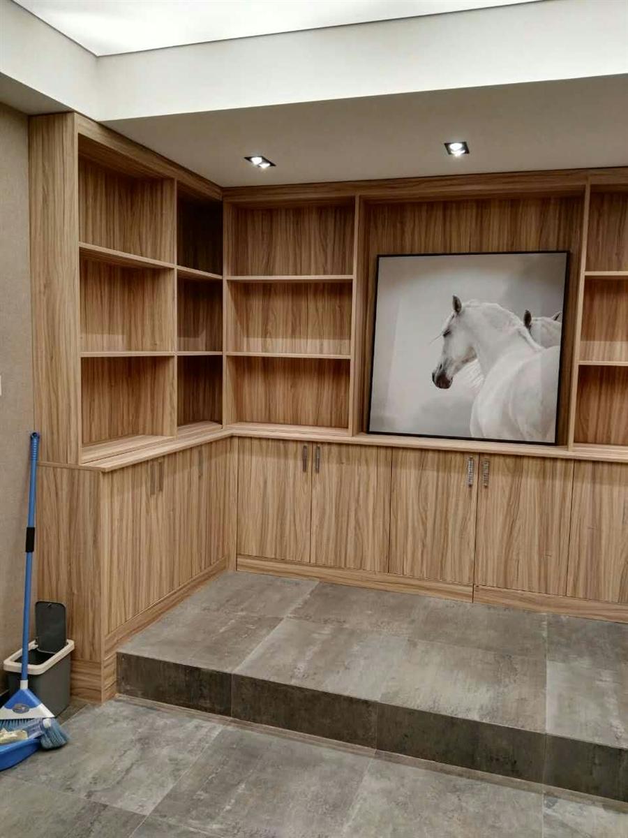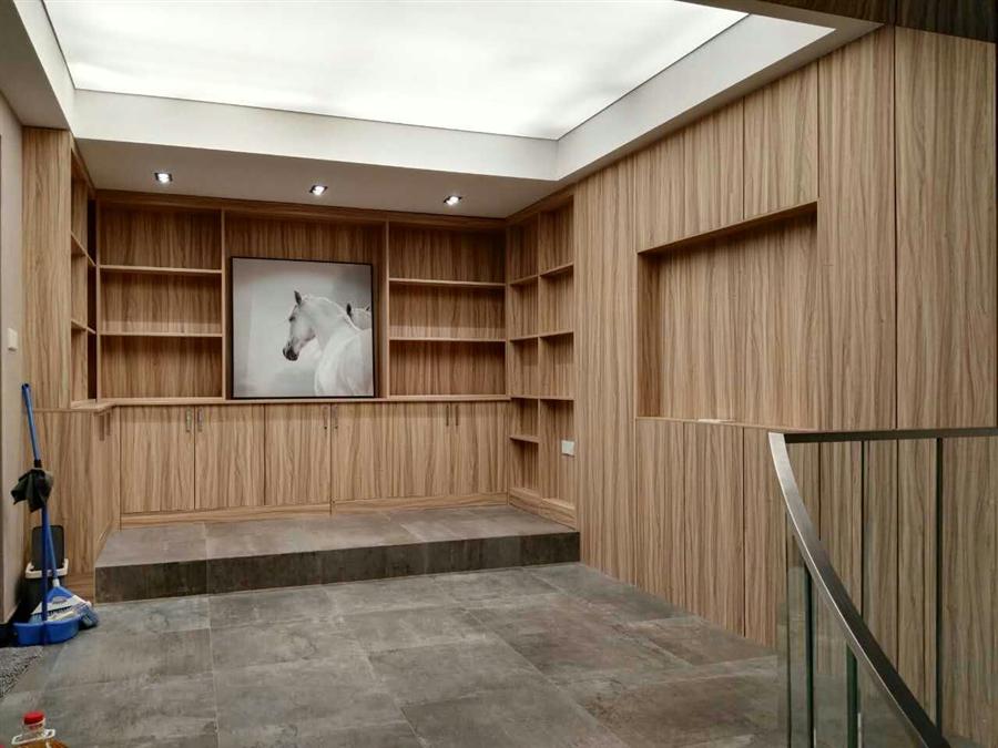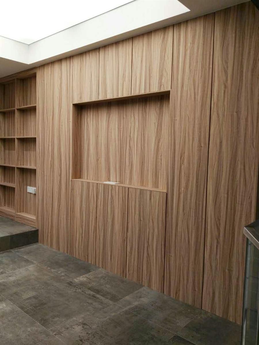 分享一组安装师傅发回来的哑光UV木纹装饰柜及护墙板现场实拍图