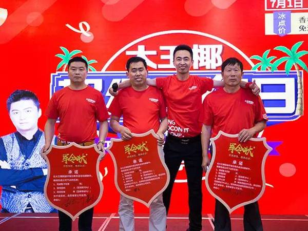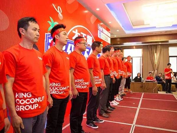 当日活动,全员身穿品牌VI升级后全新红t恤,形成了一道具有大王椰品牌特色的火红风景线。