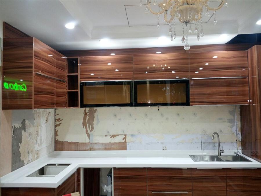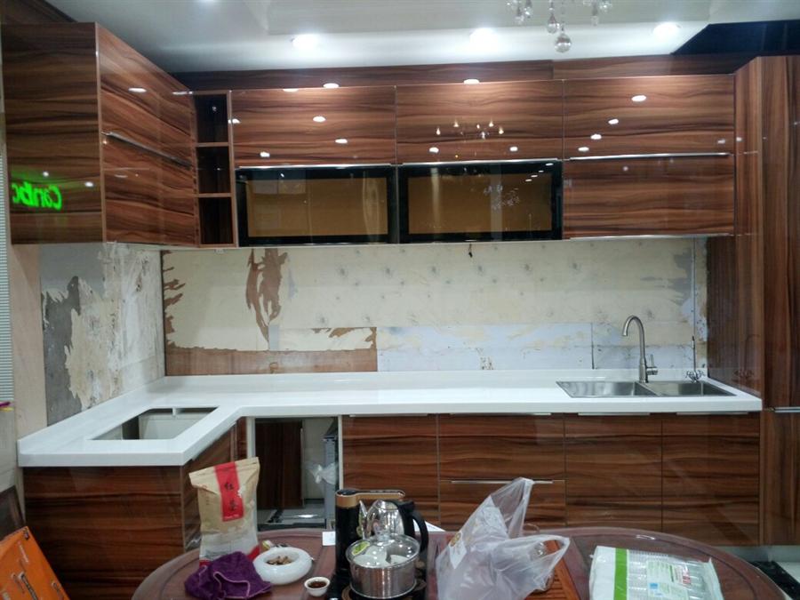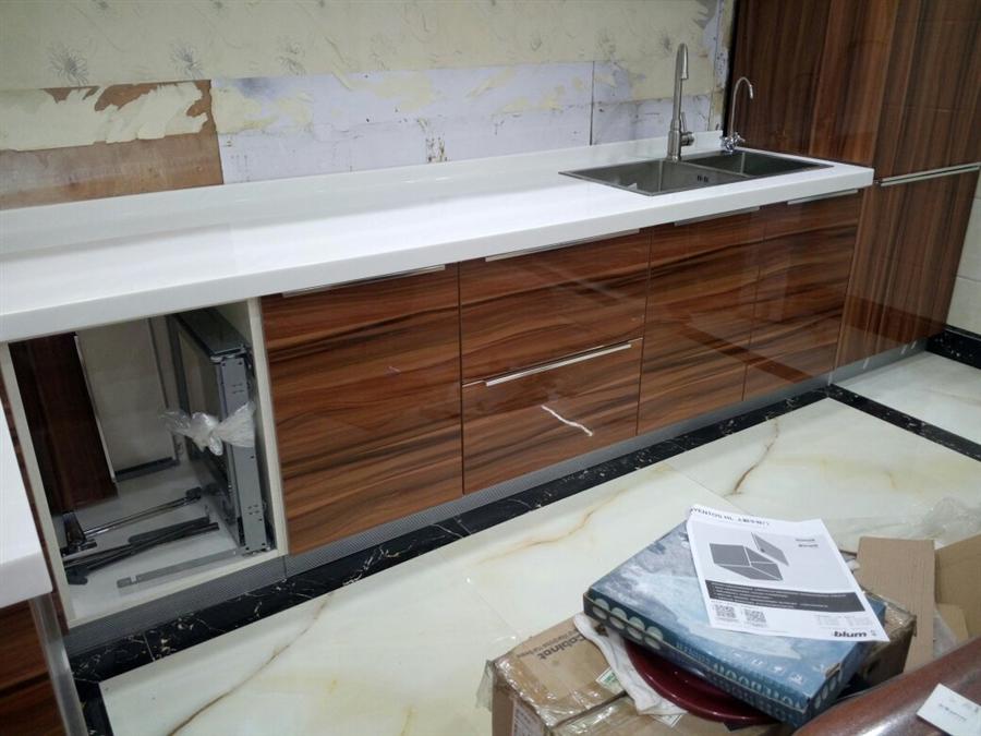 下面是广州花都李先生的UV高光橱柜现场安装图
